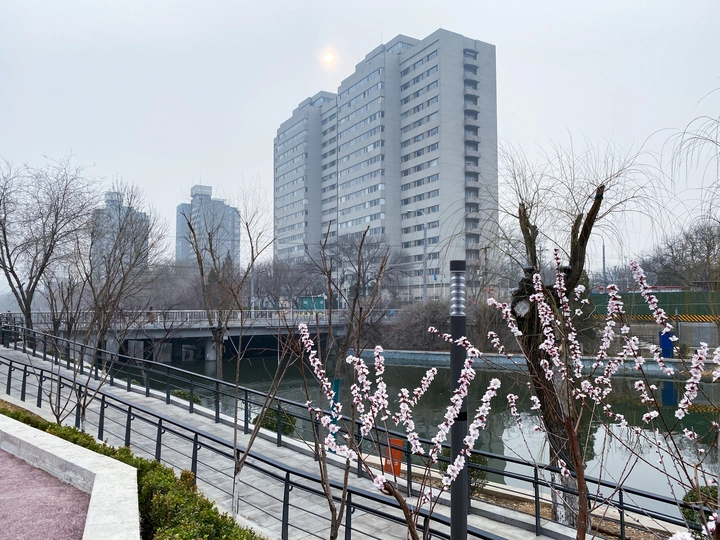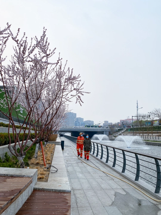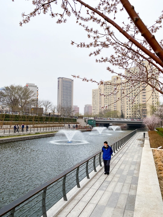 下班路上看到亮马河边整修好的地方桃花盛开了。iPhone 11 pro LR后期。刚下完雨不久,桃花的花瓣上有泥点儿😂