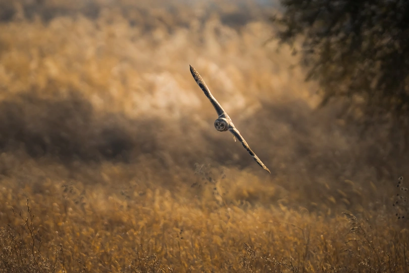 一只短耳鸮在寻找食物 不高飞的它很难进行拍摄 索尼A7R4的实时追踪功能可以持续锁定目标 并且可以持续保持追踪 为拍摄提供了便利 @米拍社长 @米拍
