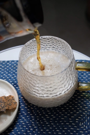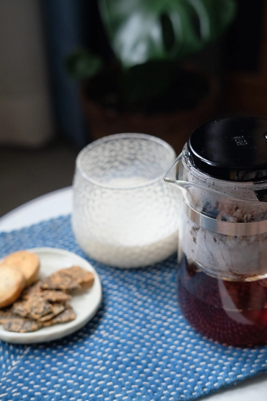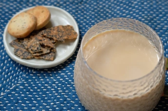 这杯早茶和你分享…… 古树红茶配上鲜牛奶,芝麻脆和咸曲奇。 满脸的满足。