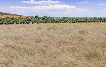 伏击 小狮子饿了,母狮子躲进草丛中,准备伏击角马。角马们远远望着狮子,一场搏斗即将开始。 我是资深野生动物摄影师,常年带队旅拍世界各地,也带队拍摄国内风光,欢迎咨询。