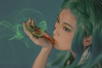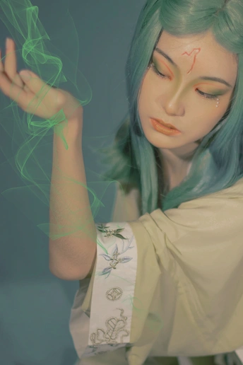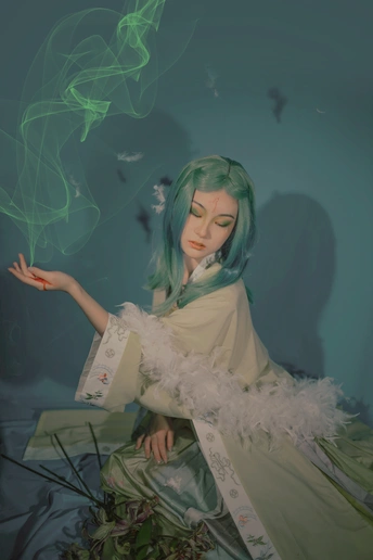 “䳐鸟,其色青黄,所经国亡。在女祭北,䳐鸟人面,居山上。” ?♀️:小楚 妆造&?:茴香 协力:山猫