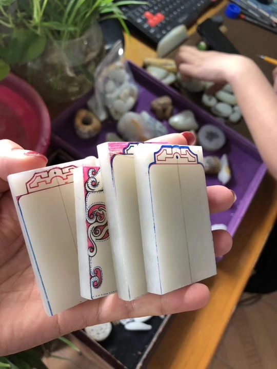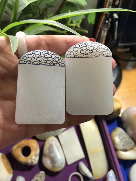 都说和田玉牌子是籽料中的硬通货,那么到底是怎么回事呢,其实籽料牌子比较薄有点瑕疵一打灯就一目了然,因此设计师在切割原料的时候会尽量的避开所有的瑕疵,一块籽料把最精华的部分留给了牌子,那么它的价值就很高了,因此就有籽料牌子是业内的硬通货之说,下图一批各式各样的牌子有没有让你心动的那一块呢?