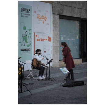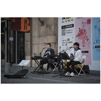 上海外滩源,偶遇街头艺人表演。两位小伙唱得不错,吸引了不少路人驻足观看聆听