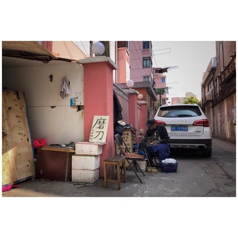在弄堂口工作的手艺人。城市的发展和变化,这样的手艺人越来越少,且年岁已大。若干年以后,这个城市里就没有他们的身影了……