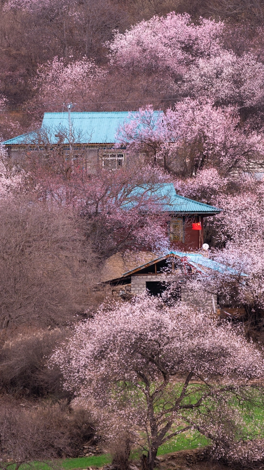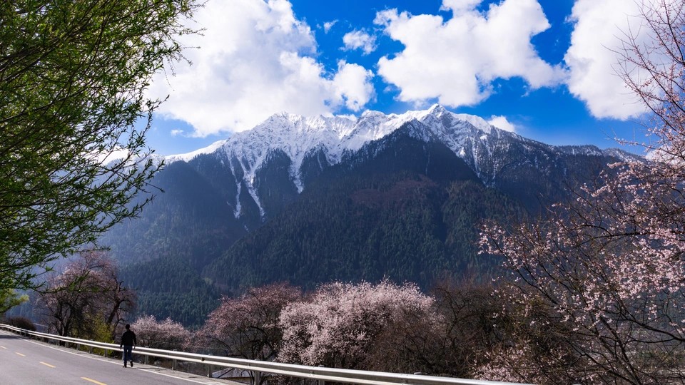 独影高原,万里雪峰,宿小村,过草甸,越山林,踏雪寻踪高万尺;扶摇直上问雄鹰,山路萦回碧水畔;四季变幻,无量镜影。三月春光桃花红,雪花柳絮随风舞。繁花葳蕤,田园小舍,乡里人家,喜迎远客。