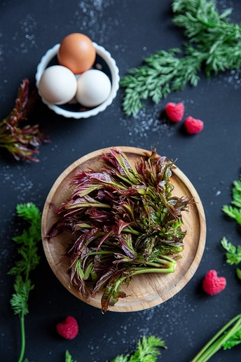 初春的香椿芽尖儿鲜嫩, 取一把和鸡蛋混炒, 或者切碎摊小软饼, 独特的香气,是春的一缕 生活 要慢一点~