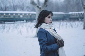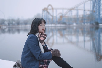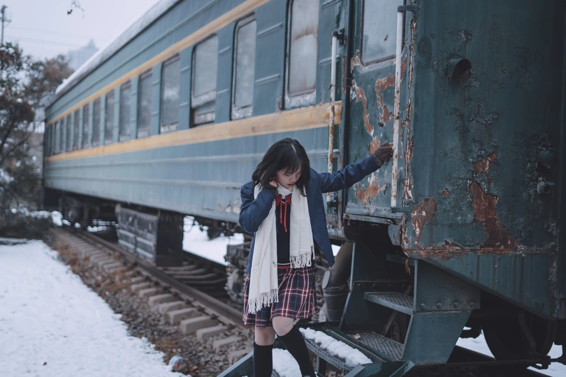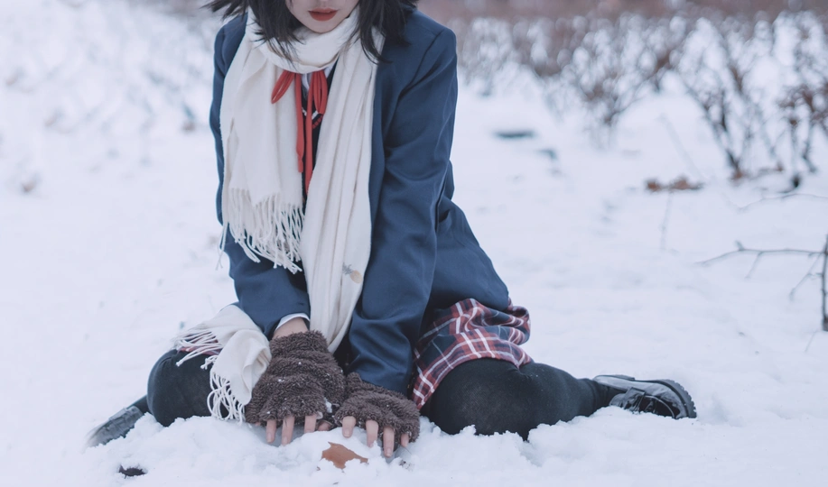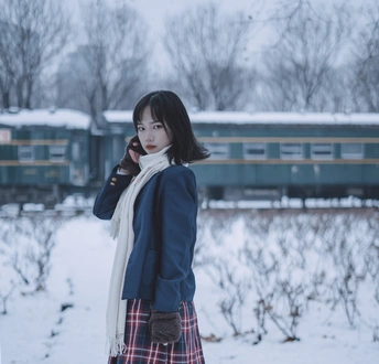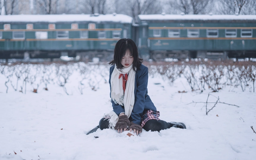 在寒冷的2021年的第一场雪寻找穿jk的小姑娘