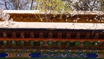 徜徉于藏式建筑庭院 恍若异域江南 寻前世之光影 古树,丛林 桃花村寨,僧侣,庙宇 呢喃经诵,冥冥鼓起 浩渺千年,不绝于耳 馨雅相伴,镜影不已 不觉泪目,不觉欣喜 不惑年华,不迷宙宇 清清朗朗,流光于心 闭目绝闻,静合空寂 聚合致远,消散无期 轻身妙美,梵我归一