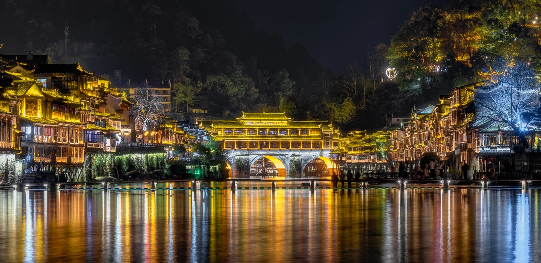 凤凰古城虹桥夜色。