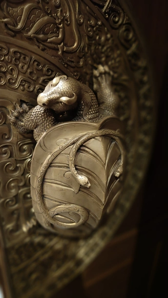 尼山胜境内的一些青铜或是仿青铜的饰物,有四圣兽门纽,有仙鹤铜灯神马的,凑一起发一组。