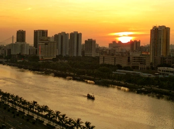 孤舟检阅楼林秀 后浪纷翻夕阳红