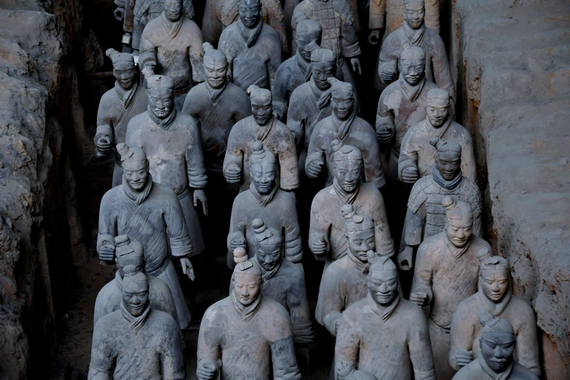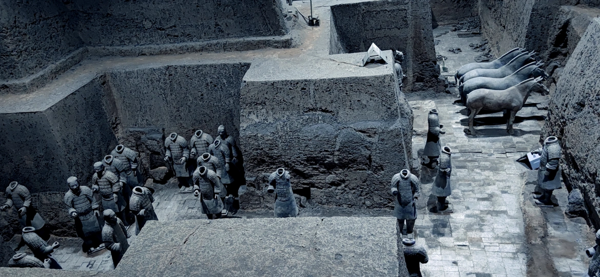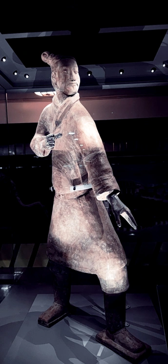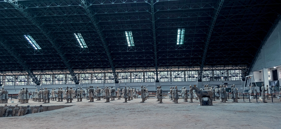 士兵们紧握剑、戈、矛、弩等兵器。 一个个气宇轩昂,精神抖擞。 不由让我们想起,这就是秦扫六合的精锐之师