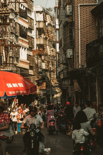 市井生活,充满人文气息,高楼夹道,“蹿”流不息。