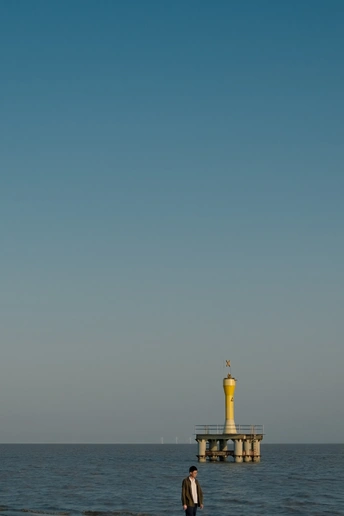 傍晚的江边总是有一些孤独的人,听着浪花拍打沙滩,迎着夕阳握紧余晖