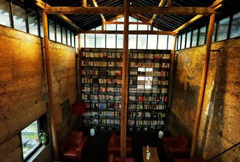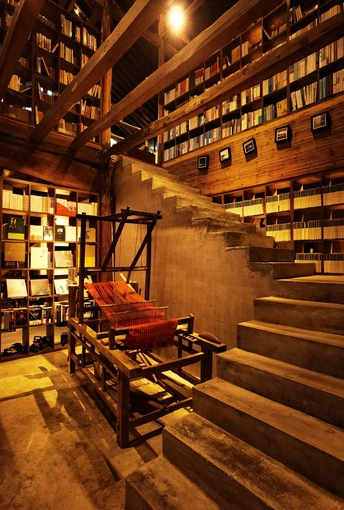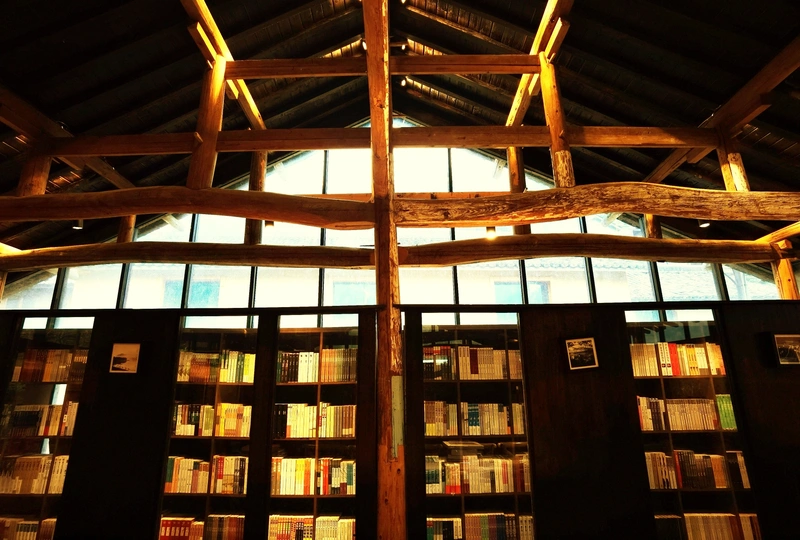 先锋书店大多藏在深山里,去过沙溪店,错过陈家铺店,这是到访的第二家店,雨中的书店格外静谧,左右两栋,皆为黄色夯土墙,和山村和谐共生,墙顶用玻璃抬升,让更多的自然光进来,可以独霸一栋喝杯咖啡看看书发发呆,或上二楼趴在窗台上听雨,是个安静的好去处。