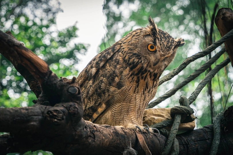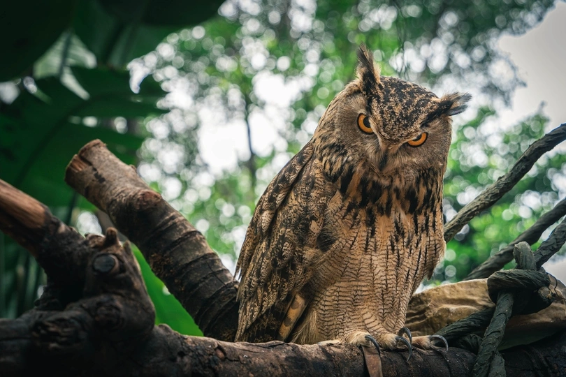 五一假期,游广州番禺长隆飞鸟世界,一只枝头的猫头鹰格外吸引注目,其犀利的眼神透露出一股王之霸气。