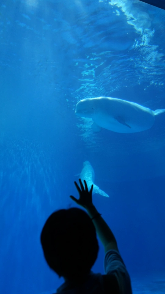 五一假期和朋友去赣州极地海洋世界抓拍到的这一张照片,两只白鲸都是年幼的,然后拍到一个小朋友去触摸它,想想人类的童年是多么的自由快乐,白鲸的童年却是在一个海洋馆里,甚至在一个狭窄的水池里,两只年幼的白鲸原本是属于拥有占地球面积70%以上的海洋里……