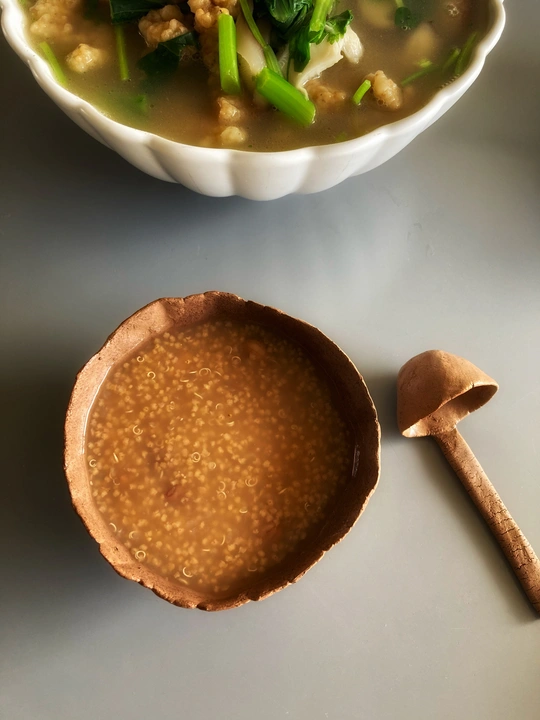 自己手作的饭碗和勺用起来有奇妙的感觉。