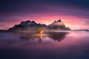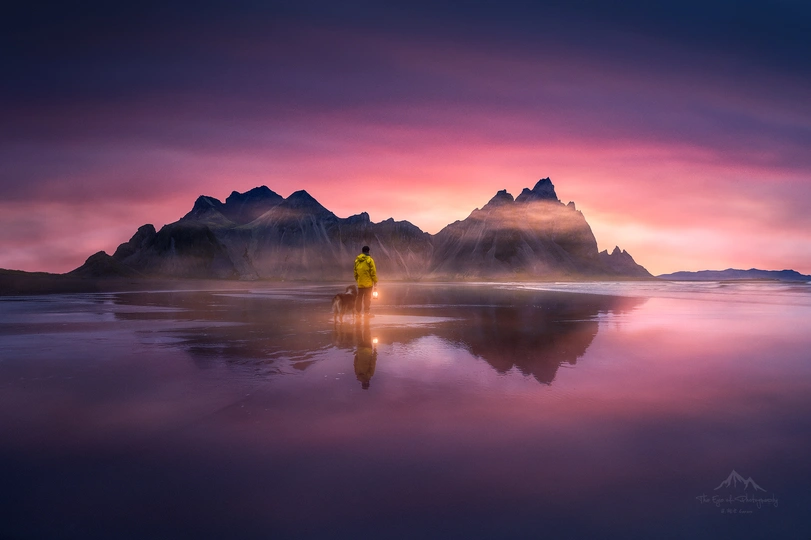 《蝙蝠山的晨曦》晨曦微醺于天际,橙黄与淡紫翻涌。借着鱼灯的微光,和森尼漫步在宁谧的沙滩上。此刻我们也融入了这个世界。PS:这次的冰岛之行,我们在Vestrahorn的营地扎营了3天,这已经是我们在Vestrahorn第三个清晨。这个清晨我没有了前一天的兴奋,取而代之是想静静的、不动声色的融入这里。白天我在周边闲逛、踩点、和生活在这里的人交谈。在Vestrahorn农场主的咖啡厅里,泡上一杯拿铁,一呆就是一整个下午。我想这就是在路上的意义,行走在路上的阿卡Carson