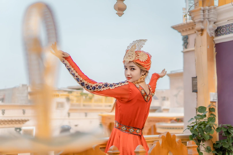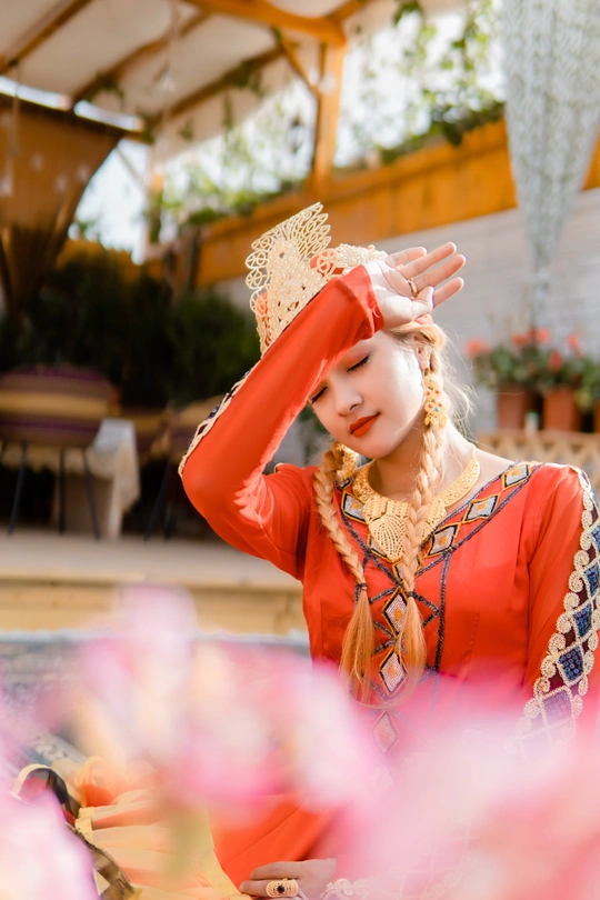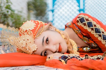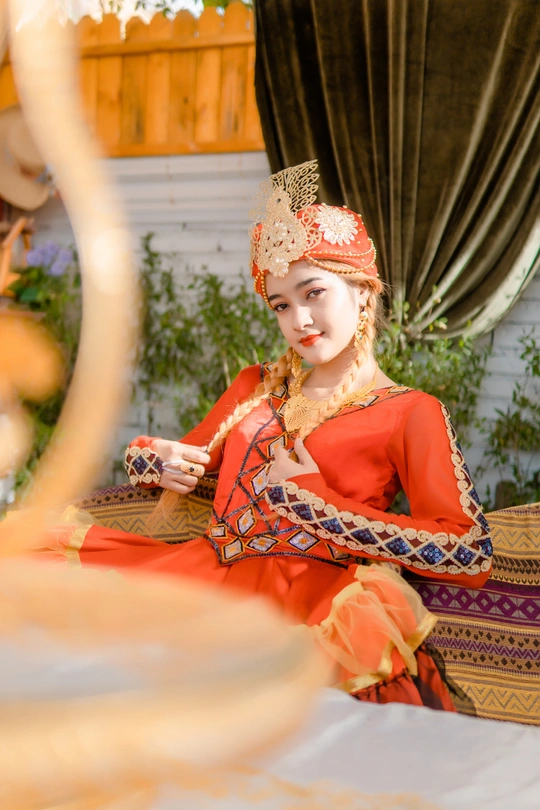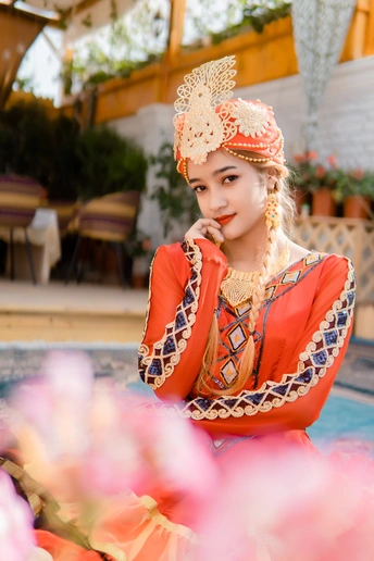 【摄影日记】亦诗亦韵亦端庄 摄影:我 走上屋顶,触摸阳光,在华丽多彩的维吾尔族服装的装扮下,你美丽得像一首抒情诗,全身洋溢着少女的纯情和青春的风采,你那双湖水般清澈的眼眸,长长的睫毛,一种安静的温柔气息。