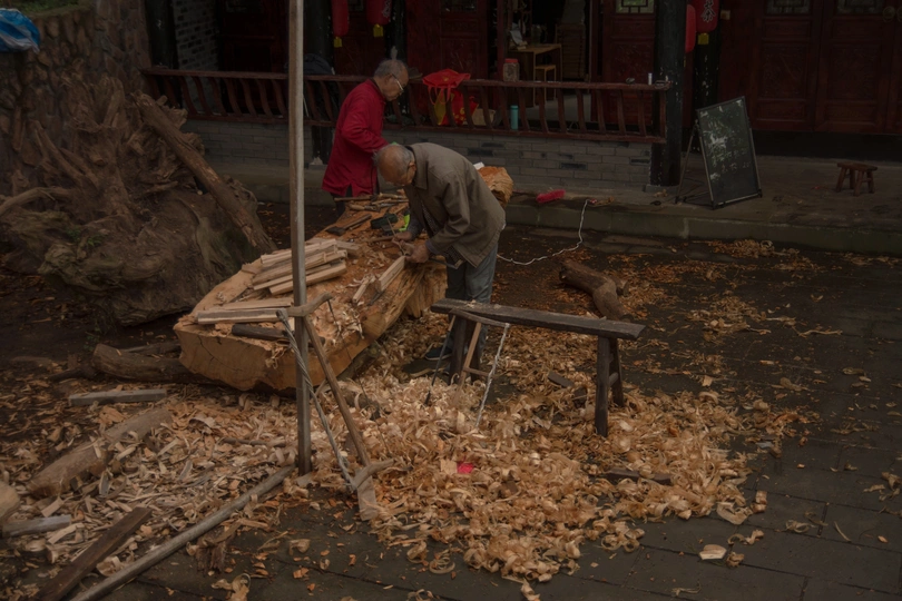 老道长在抱球 老工人在刨木头 一个仙风道骨 一个满身尘土 无意评判什么,只是单纯的感叹