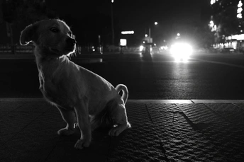 和朋友夜晚出门压马路的时候拍到的流浪狗狗?