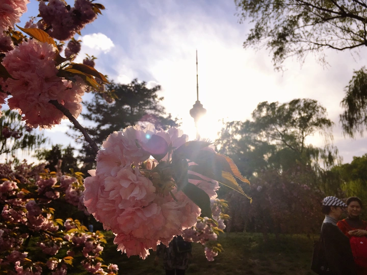 多年前的照片,樱花还是那么好看,尤其夕阳中中央电视塔在樱花中更加漂亮