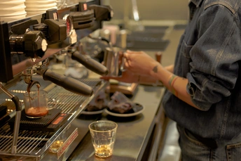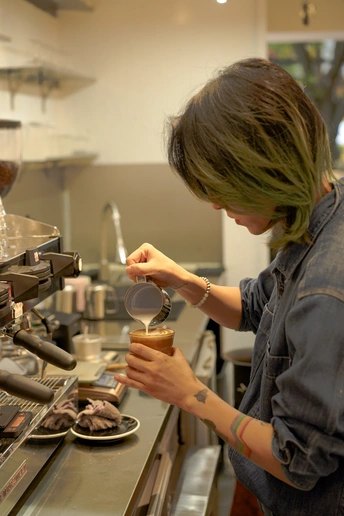 小咖啡馆的舒适可能来自于人与咖啡能更亲密,能近距离看咖啡制作,喝着咖啡时能与咖啡师闲聊,甚至能提点无理要求,冠军店不在繁华市区,隐身在安静小街上,少了些城市的节奏感,多了些慵懒自在,门口发呆,看看人行川流再舒适不过了。 #拍摄100家咖啡馆NO.55