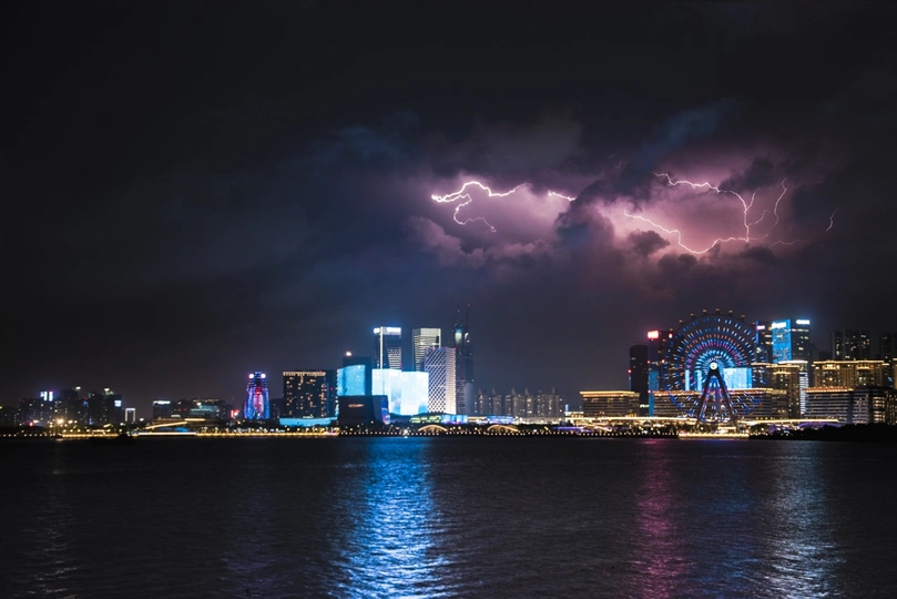 2021.5.30在前海石公园抓拍到的闪电 当天本想着去拍晚霞,刚好遇上了暴风雨前的闪电 当时就怼着摩天轮拍摄,希望能拍到摩天轮闪电 回去筛选选了一张最好看的一张闪电分享给大家 请大家点评?