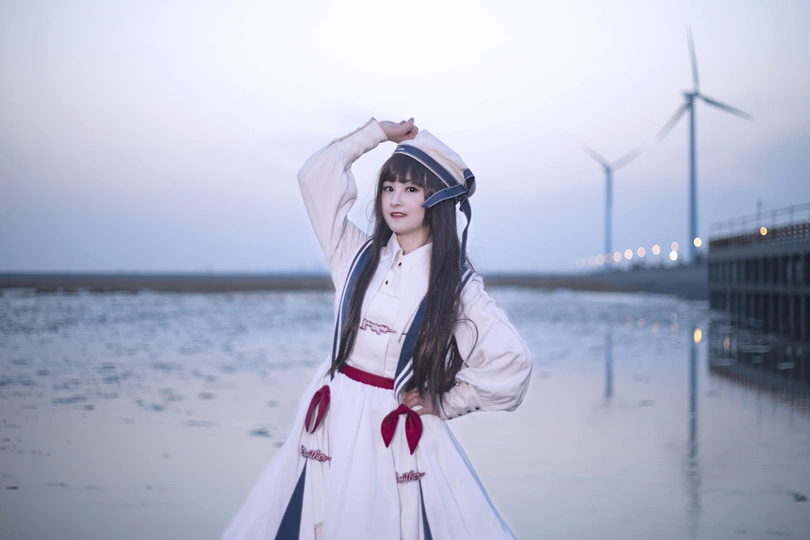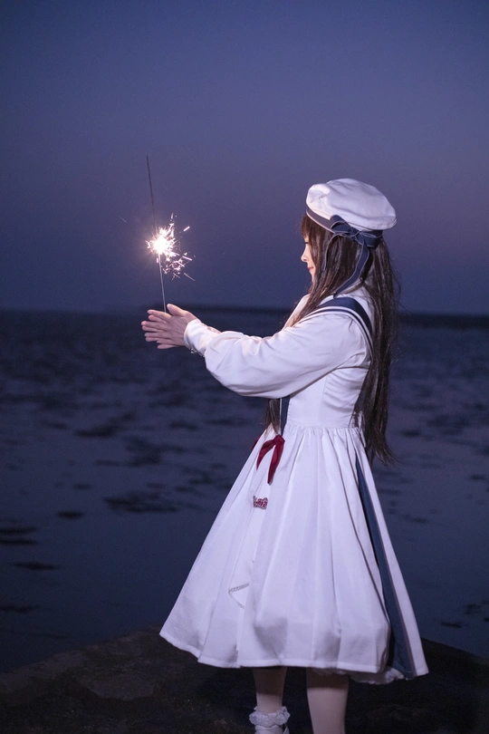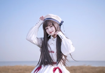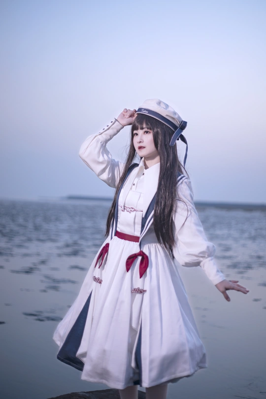 模特:蕖蕖 摄影:娃娃酱 在海边拍海军风lolita 真的超合适![嘻嘻]