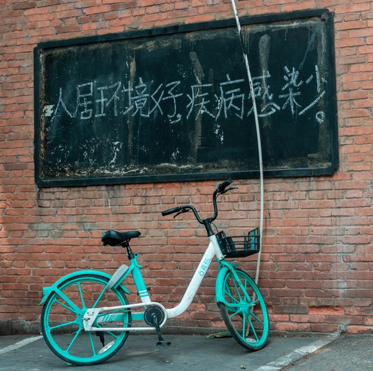 今年4月初在昆明的一条小巷子里拍到的照片。疫情时代下的标语和共享经济中的产物在这样一个瞬间碰撞,心里有种奇怪的感触。