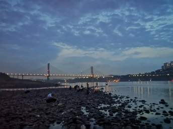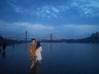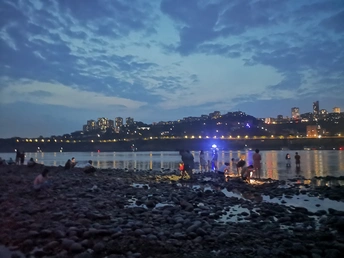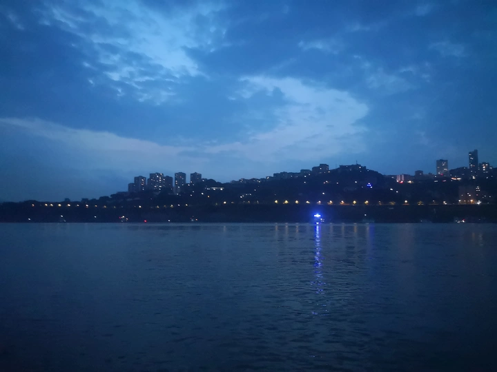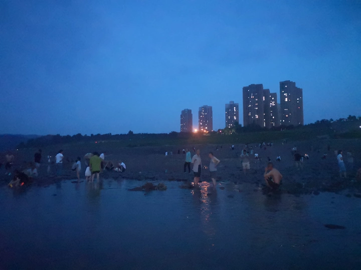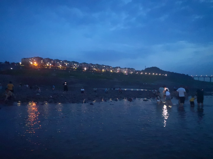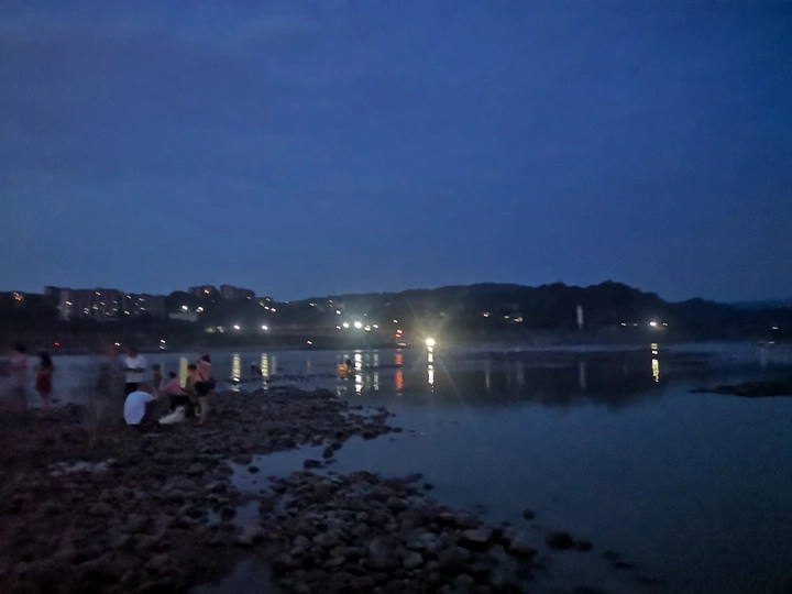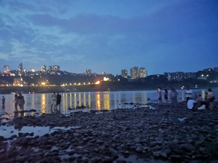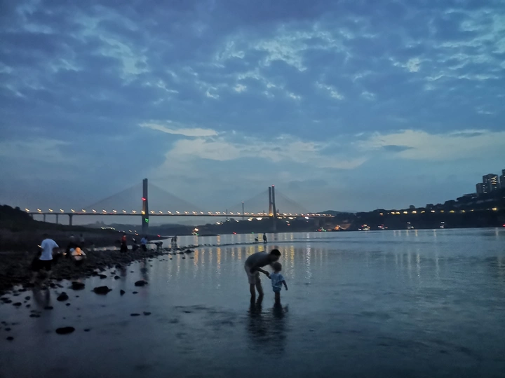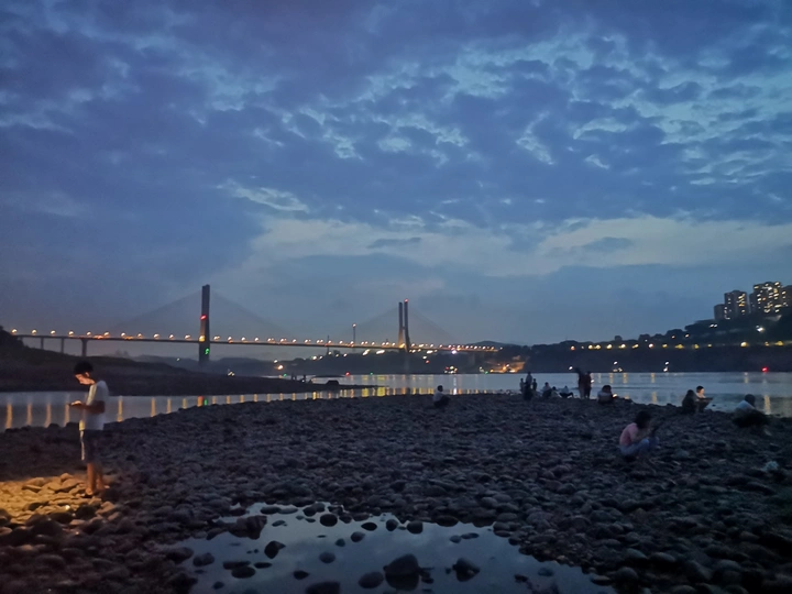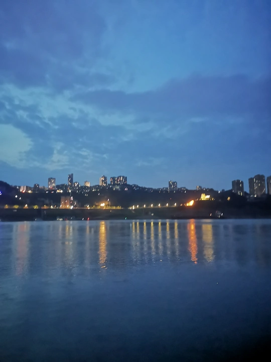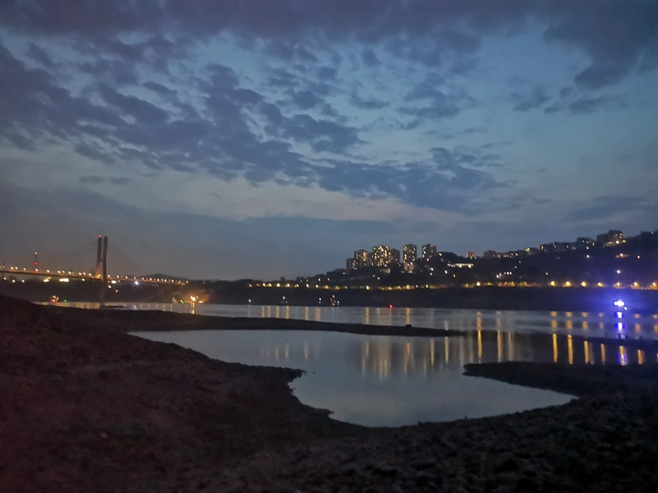 长寿江南街道滨江路长江边,夜晚的天空美景看起来好美,好漂亮啊?
