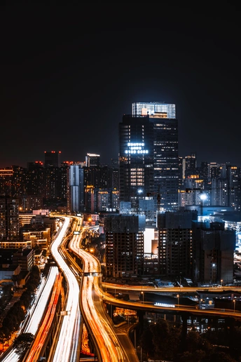 入夜的都市建筑和道路 连贯的车流犹如动脉 给流经的建筑注入能量 形成城市级的生命体