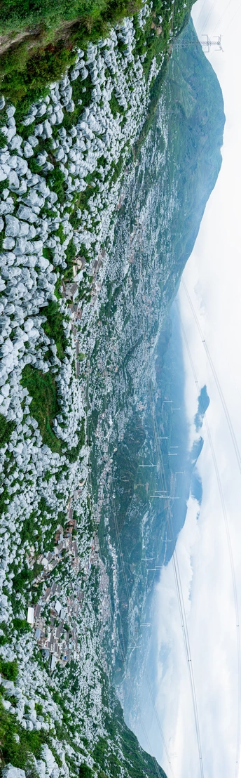 满山的车厘子,白色棚下面是车厘子树。位于四川雅安市汉源县