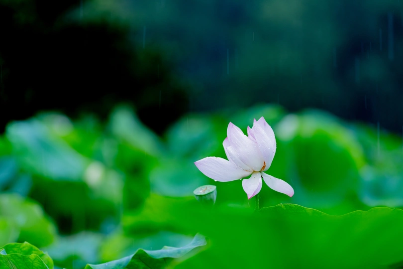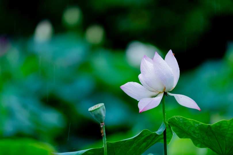有点遗憾,想拍雨丝打落荷花的片子,有深色背景的地方没有好看的荷花,有好看荷花的地方没有深色背景,看来还要找机会