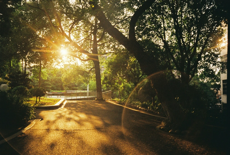 和煦的阳光,通过稠密的树叶洒落下来,形成点点金色光斑。想念那时候的美好。