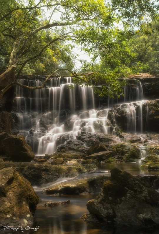 八寨沟清凉的森林里 虫鸣伴着流水 五月份的瀑布水流还不够大 但是通过长时间曝光的手法 定格更加平顺柔滑的水流[鼓掌]