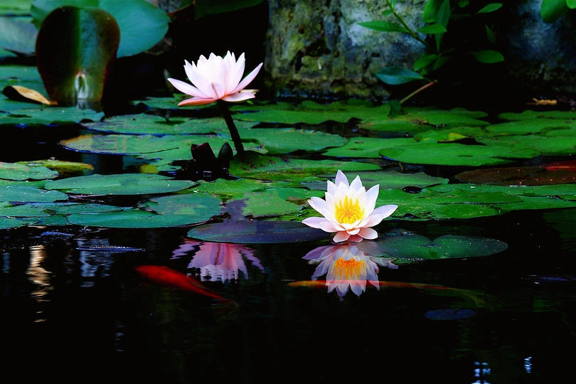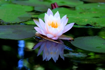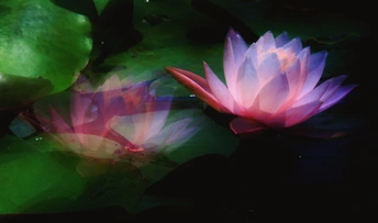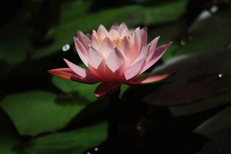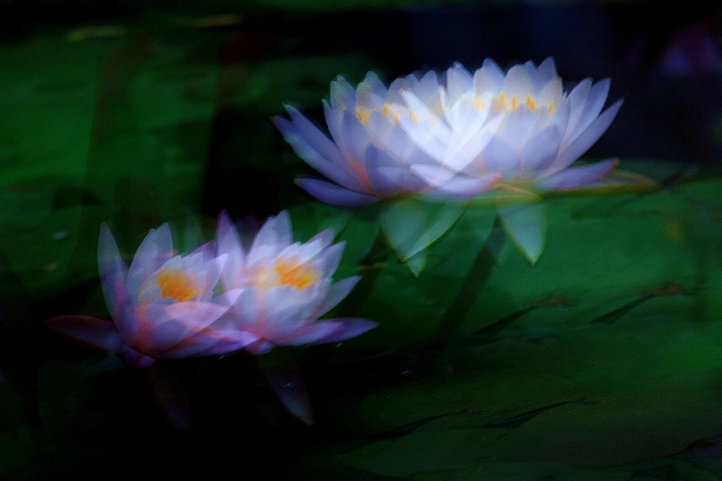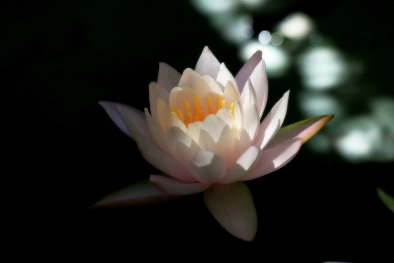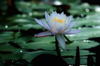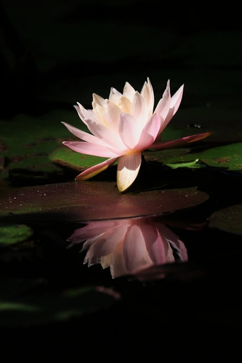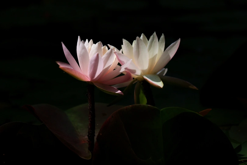 睡莲在光影的衬托下更加出尘不染。