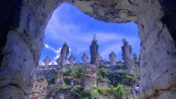 来贵州游玩你可以来这里,作为贵州本地人推荐,你可以花溪夜郎谷。 这是我第二次来花溪打卡,初次误闯神秘夜郎国,一个异域古堡的探险之旅。 贵州值得一去的小众景点很多,花溪夜郎谷就是其中一个令人惊喜的好去处。花溪夜郎谷,独自驾车或者步行去都可以,门票适宜。人们都知道“夜郎自大”这个典故,古夜郎国因为一直遗世而独立,镶嵌着神秘的异域风采。曾经的夜郎古国已经不复存在了,而却有一位热爱着中华古文化的艺术家宋培伦先生,耗时25年,在曾经夜郎文化的发源地,花溪斗篷山,打造了属于他梦想中的夜郎谷。 一次回乡拍毕业设计的机会,我第一方案因特殊原因中断,朋友建议我来夜郎谷看看。加上朋友驱车,于是我们来到了这座神秘的山谷。还没进景区,一片林海出现在眼前,放眼望去一片郁郁葱葱,完全隔绝了大城市的喧嚣。穿过马尾松林,进入城门,豁然开朗!悠长的峡谷两旁修建了无数个古夜郎国图腾雕塑,美轮美奂,赏心悦目,登上高高的古城堡墙,视野更好,图腾雕塑尽收眼底。喀斯特地貌的怪石和石板建筑,不由感慨雕塑艺术家与大自然的完美结合,也能感受到艺术家为此倾注的大力心血。