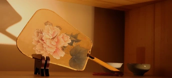 此扇是老师所做,展于下沙某高校的艺术中心内。 花开富贵,仪态万千
