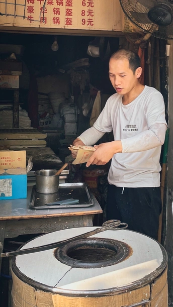 偶遇一家没有门头的锅盔店,但是味道还挺好的