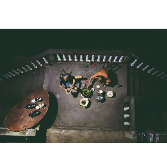 这种照片拍于2019年的夏天 当时正是夏天 天气很热 放暑假回来的我 和爷爷奶奶到房前的空地上吃饭 晚餐很简单 是一锅煮熟的白菜蘸辣椒水 想起了 这就是小时候的味道