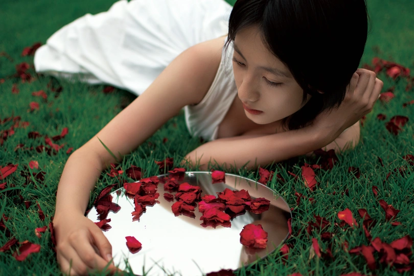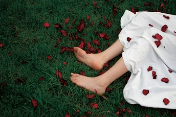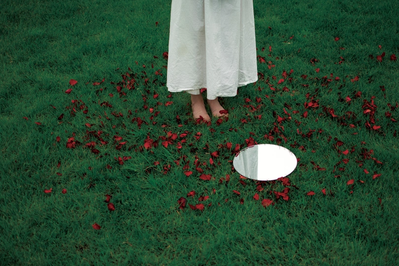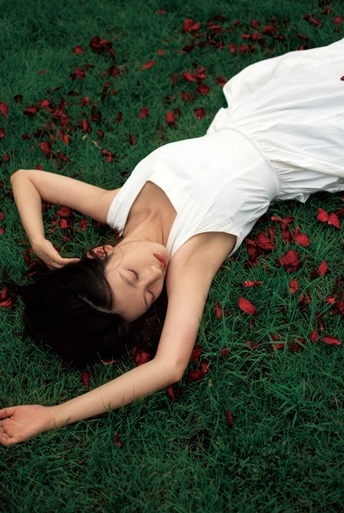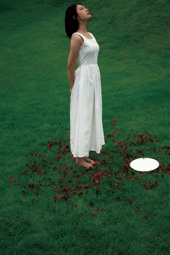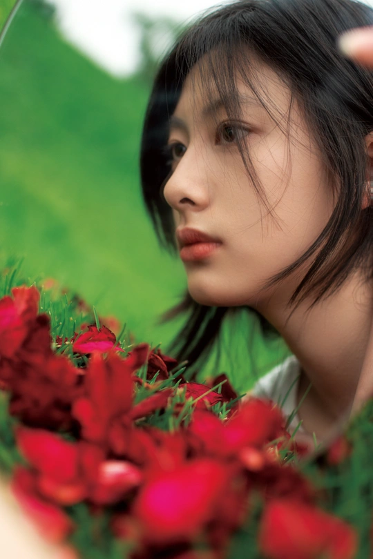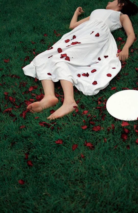 长久地看着红色的花, 转过身去, 看红了眼睛。