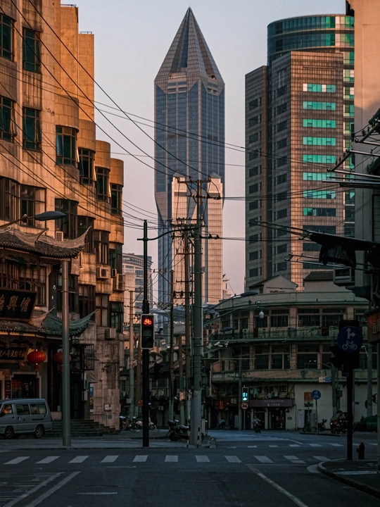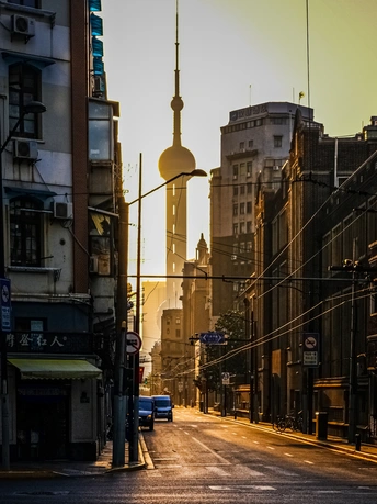 当阳光从浦东穿越陆家嘴射向站在街头的我,我看着空荡荡的街道发呆,过了很久才想起来举起相机按下快门。