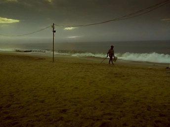 台风压境,乌云盖顶,海浪汹涌,渔民匆匆