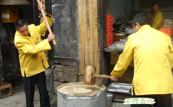 十几年前,在重庆磁器口古镇大街上的随拍。传统手工食品制作。