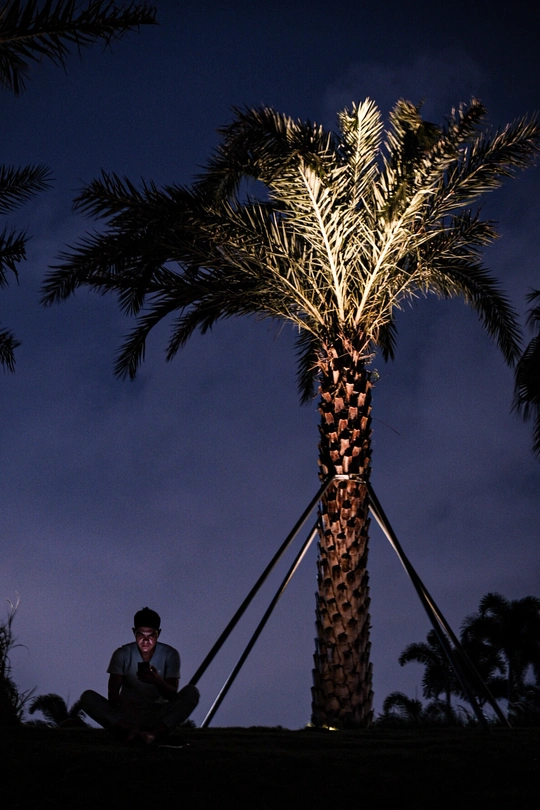 树下的你,手机的光刚好照到脸上,可能是在与朋友趣聊,也可能是小憩中继续忙着工作,一半是生活,一半是为了活着…