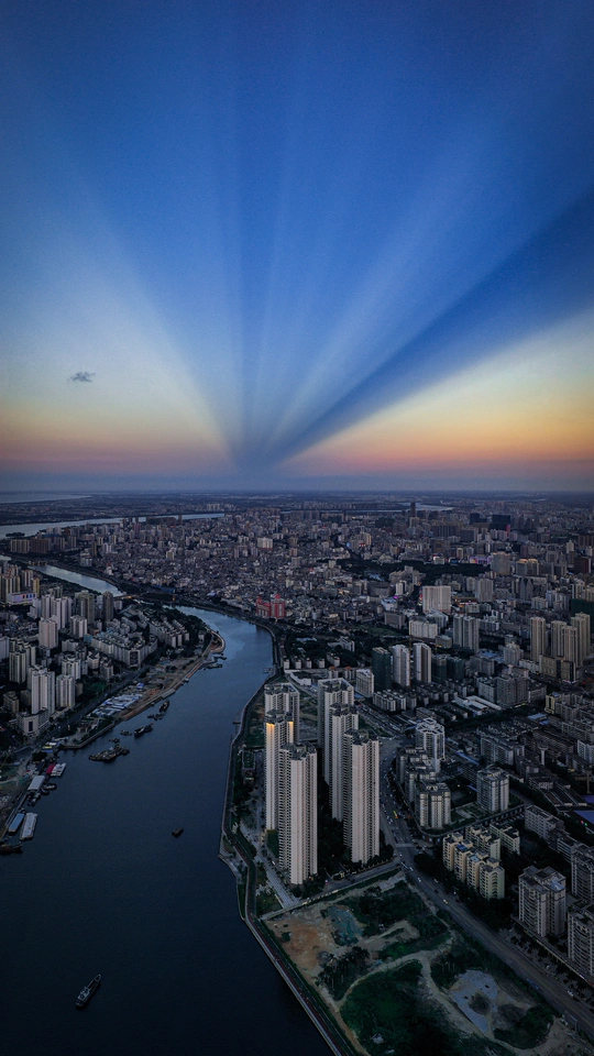 云隙光将天空分成三瓣,宛如彩虹色一般的天空只在等待一个合适的笔刷将调色板混合在一起。