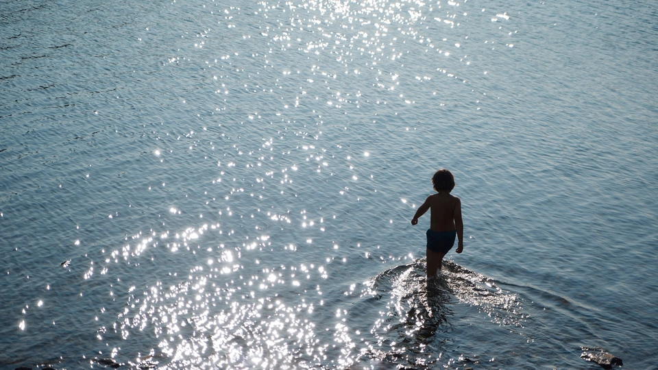 小朋友在水中,太阳光撒在水面上,如梦幻般。童年美好的时光留在这个夏季里,留在这张照片中。 @米拍