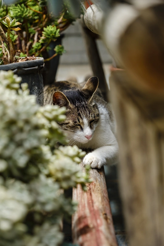 拍摄于云南大理旅行期间,在寂照庵遇到了这只可爱的猫咪,它开始很警觉,看我没有恶意,就一下子放松了